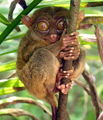 El tarsero fantasma: Posee unos ojos enormes, habitan en los bosques de Indonesia, Borneo y Filipinas, son muy pequeños, sus ojos tienen el mismo tamaño que su cerebro y son nocturnos.