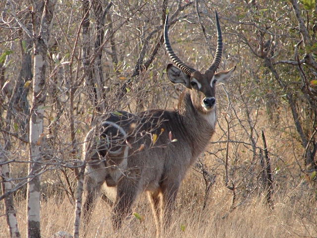 Posee unas pezuñas anchas que le sirven para nadar y para mantener una buena estabilidad en terrenos anegados. Hay un claro dimorfismo sexual, pues los machos son más grandes y tienen una cornamenta anillada, las hembras son más pequeñas y carecen de cornamenta. Su longitud corporal varía de 1.8 a 2 m., y el peso puede ser de 170 a 210 Kg. Otra característica muy notable del antílope acuático es que presenta un pelaje muy largo que está impregnado por una sustancia aceitosa que lo hace impermeable, y consecuentemente, lo mantiene seco y calient